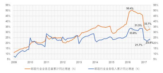 国家邮政局关于2017年上半年邮政行业经济运行情况的通报 2017-08-22